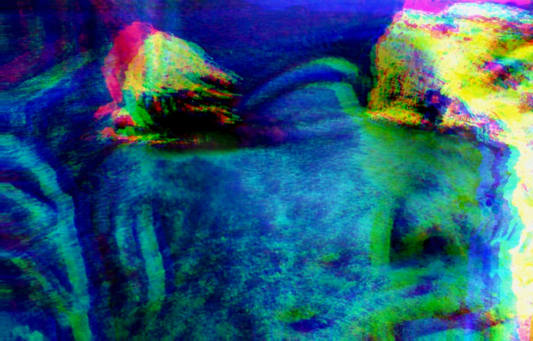 Du noir naît le bleu, et du bleu les visages et les premières fleurs… composition numérique mbp